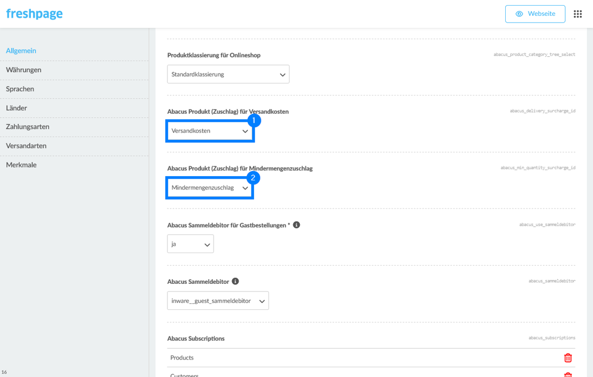 Willkommen bei Freshpage! Diese Kurzanleitung erklärt wie Sie den Webshop mit Abacus verknüpfen. Gerne erledigen wir dies kostenlos für Sie. Kontaktieren Sie uns: abacus@inware.ch oder 044 368 60 60.
