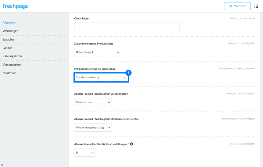 | Mandant | Mandant im Abacus, welcher mit dem Webshop verknüpft werden soll. |